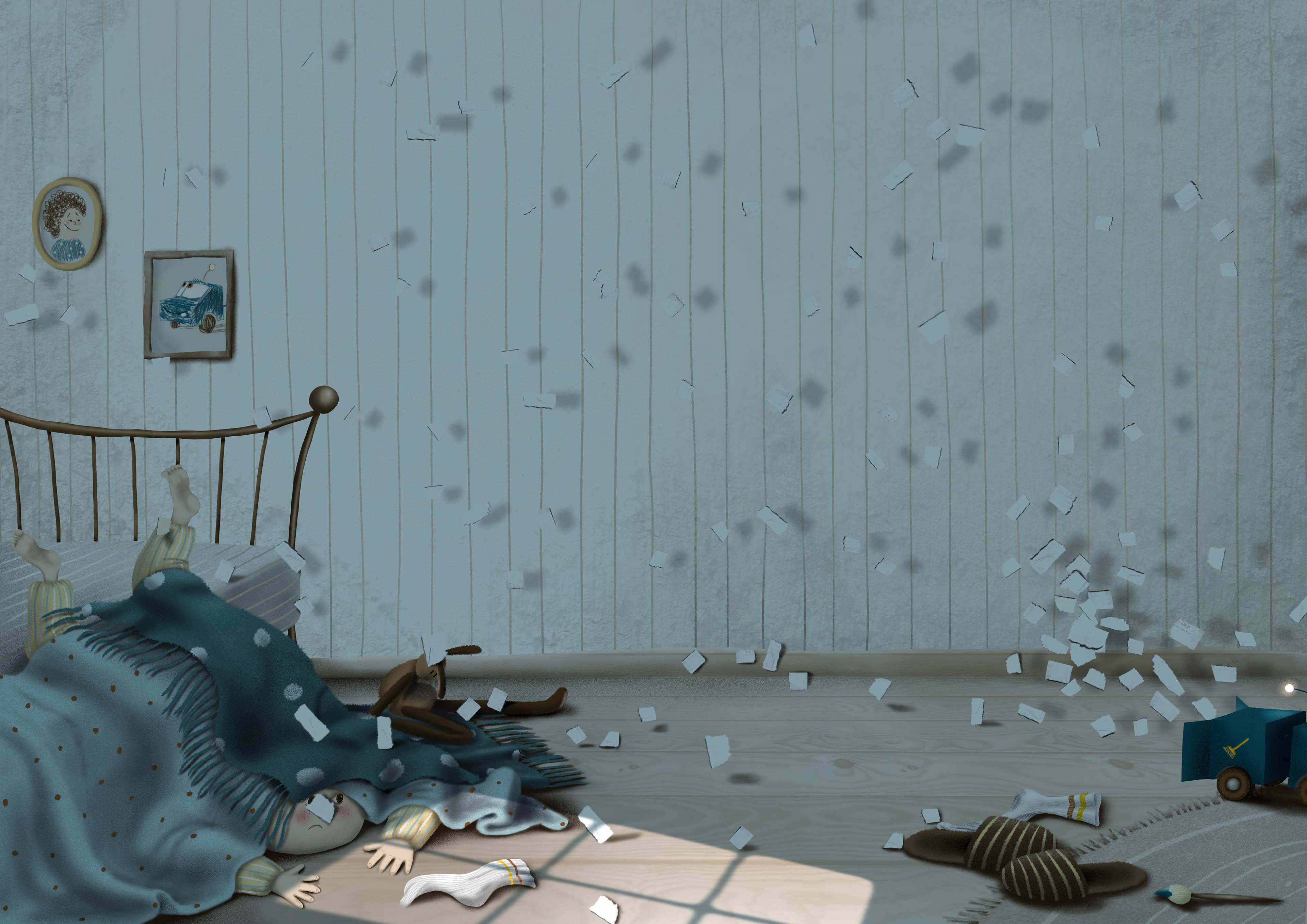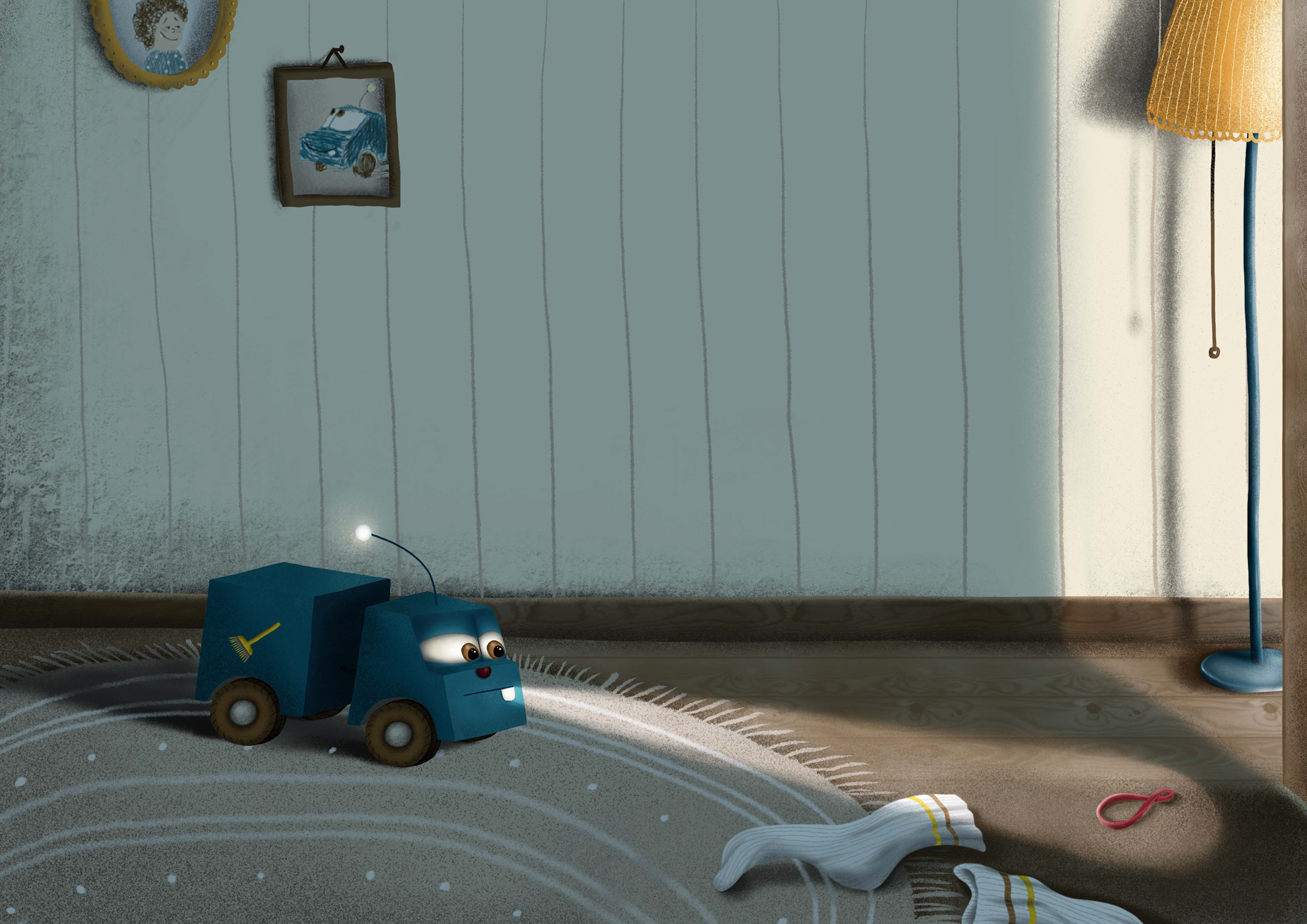 Illustrated children's book about a friendship between a little boy Sebastian and his truck toy Wastebasket.